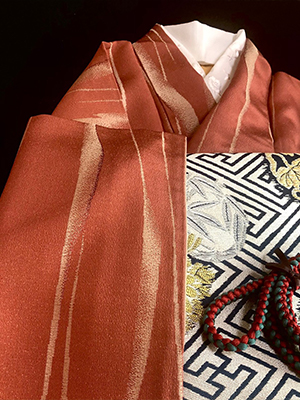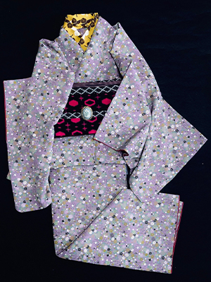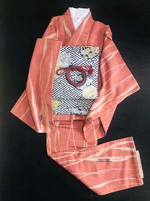 カジュアルもお出かけもこなせます。仕立てが綺麗な化繊着物。